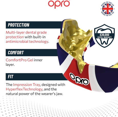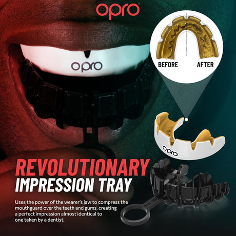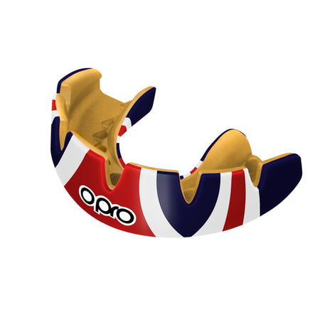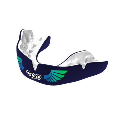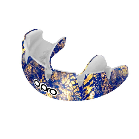 Instant Custom-Fit Enigma Gold and Blue Mouthguard for Braces
