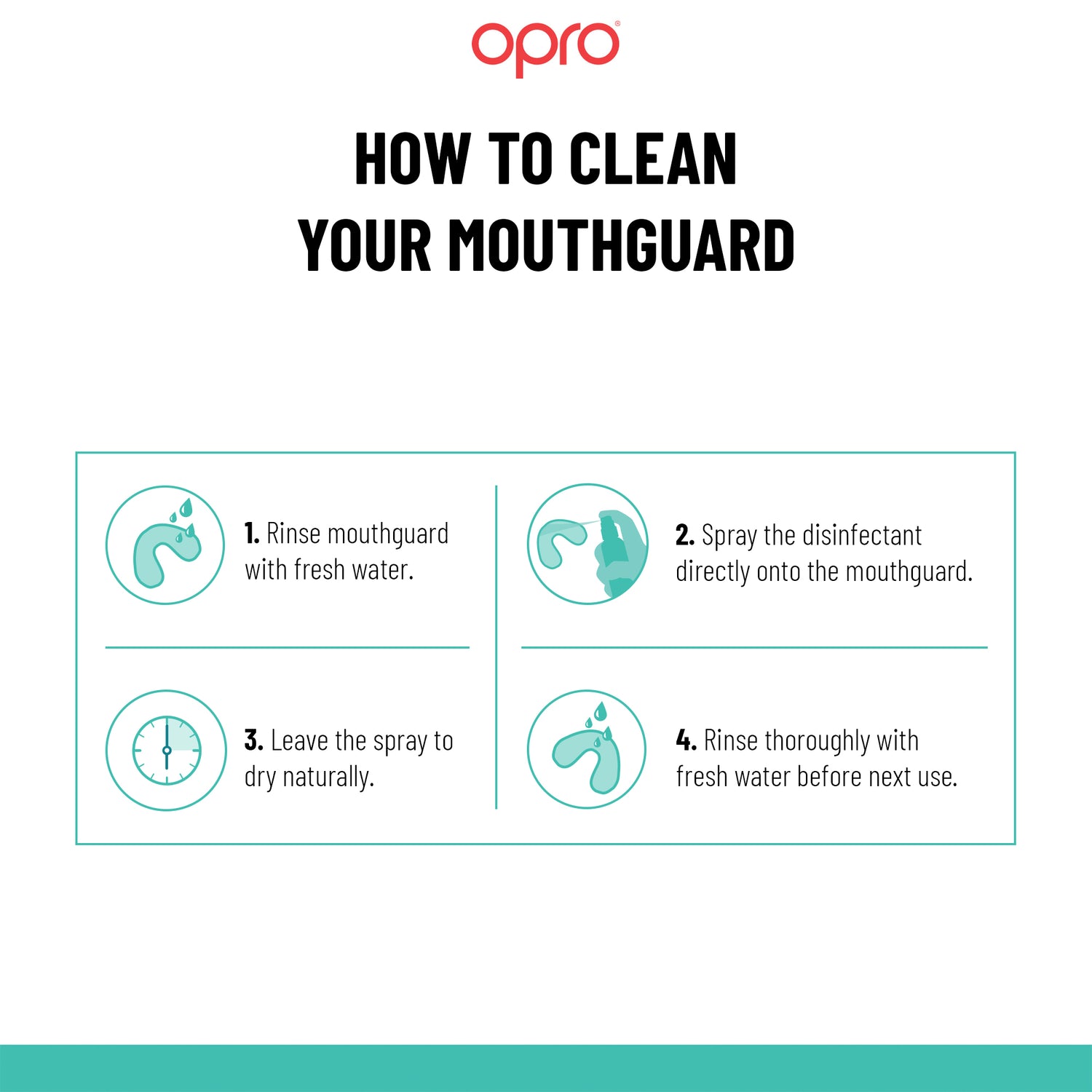 Keep your oral appliances clean and fresh with the OPRO Disinfectant Spray specially developed for mouthguards, retainers, and night guards.