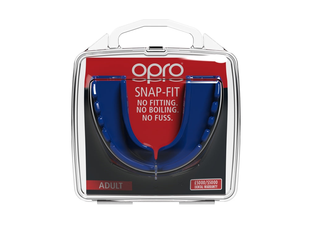 Quick fit when you need it. If you've lost or misplaced your premium OPRO Mouthguard, get rapid impact protection with OPRO Snap-Fit. The durable shell offers great short-term protection to prevent sports-related dental injuries. Play to win and protect your teeth and gums with up to $5,000 dental warranty. Keep it in your bag as a spare or use it to simply switch up your sports style.